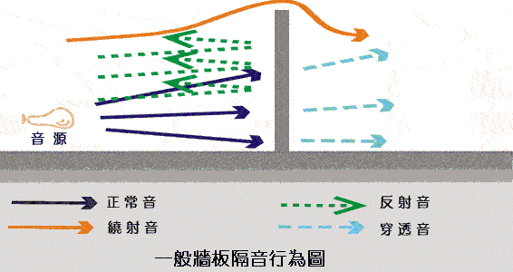 聲音會透過繞射及穿透傳遞至牆背面